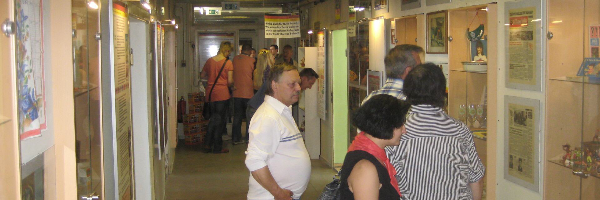 Schwerpunkte unserer Ausstellung ist die Wohn- und Alltagskultur in der DDR. Wir möchten an Hand von Exponaten und unseren Informationstafeln einen Eindruck über die Lebensumstände in der ehemaligen DDR vermitteln. Wir haben die Schaustücke wie auf einem Zeitstrahl angeordnet, je weiter Sie in das Museum hineingehen, je weiter
