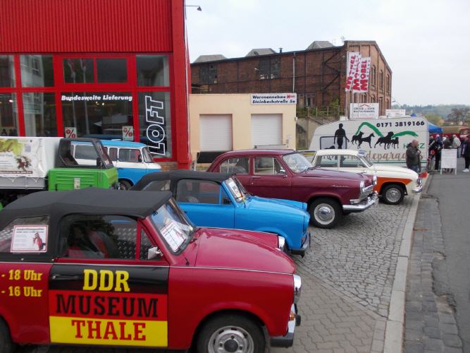 Am 1. Mai 2017 fanden hunderte Ostmobilisten und tausende Gäste den Weg zum Ostmobiletreffen am DDR MUSEUM THALE. In diesem Jahr hatten sich für den 1. Mai schon mehrere Vereine angemeldet. Auch im diesem Jahr wird es dieses Treffen wieder geben. Es ist wieder in den in den Thalenser Walpurgismarkt (vom 28.04. -01.05.2018)integriert, und hat dadurch ein umfangreiches Rahmenprogramm mit reichlich gastronomischen Angeboten. Durch die Walpurgisnacht auf dem Hexentanzplatz am Vorabend, dem 30. April sind schon fast alle Übernachtungsmöglichkeiten in der Umgebung ausgebucht, wir rechnen wieder mit tausenden Gästen, auch am 1. Mai. Wir laden euch herzlich zu unserm diesjährigem Treffen ein. Immer aktuelle Informationen und Anfahrtsskizzen findet Ihr auf den Internetseiten www.ddr-museum-thale.de und www.walpurgismarkt-thale.de . Im Anhang ein paar Bilder vom letzten Jahr. Alle Teilnehmer erhalten eine Urkunde und natürlich freien Eintritt in das DDR MUSEUM THALE! Wir freuen uns auf Euren Besuch.