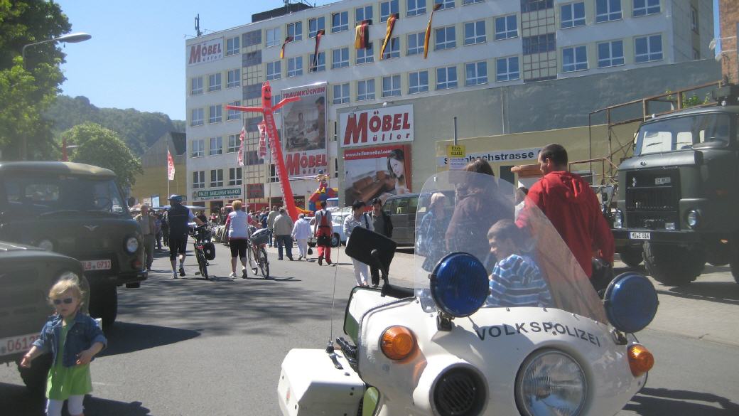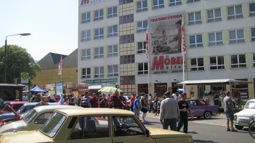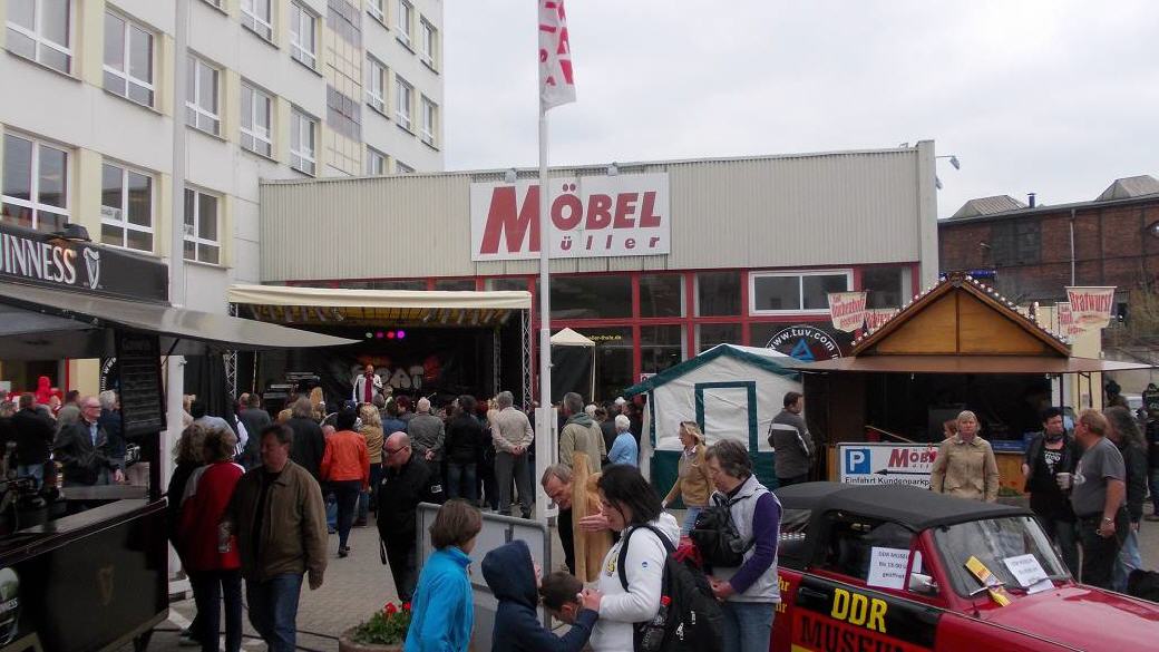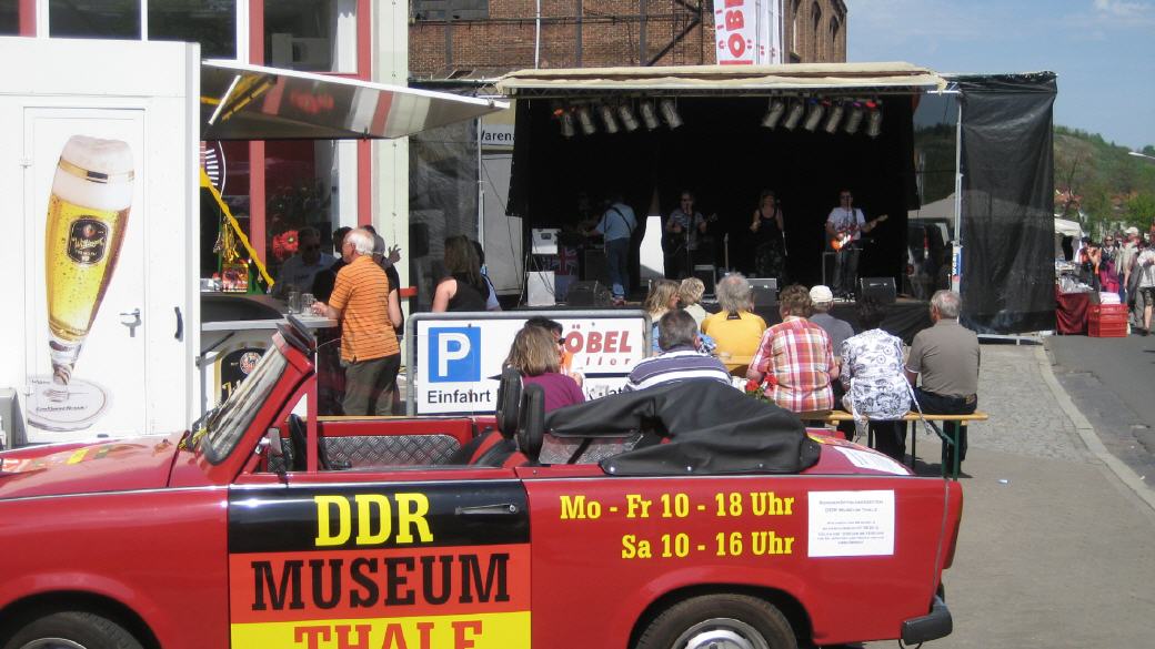 Am 1. Mai eröffneten wir in der 6. Etage unseres Möbelhauses in der Steinbachstraße 5A das DDR MUSEUM THALE. Dazu gab es einen Maiumzug, der um 13.30 auf dem Rathausplatz in Thale begann und über die Karl-Marx-Straße zum DDR MUSEUM in der Steinbachstraße führte. An diesem Umzug und unserem OSTMOBILETREFFEN haben viele Gruppen mit über 60 interessanten DDR - Fahrzeugen teilgenommen. Alle Gäste, die mit typischer DDR Kleidung (FDJ-Hemd, Pionierhalstuch, Uniform) kamen, hatten am Eröffnungstag freien Eintritt in das Museum. Dieses Angebot nutzten fast 3000 Besucher im Museum und ca. 6000 Besucher zur Veranstaltung.